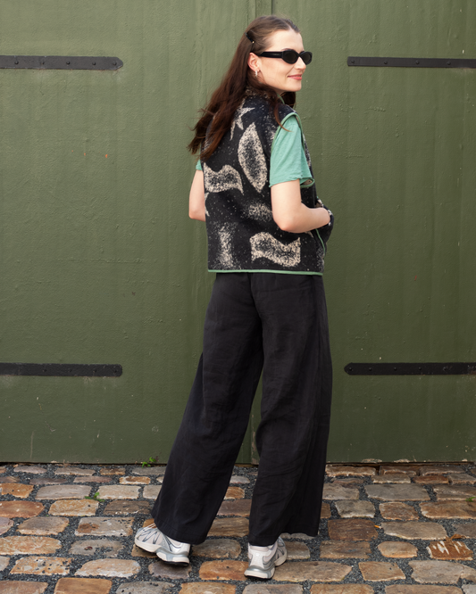 The vest, just like a sleeveless jacket/warmer in the classic sense, is designed to keep you warm when you have to leave the comfort of your blanket base. For added convenience, it zips up, features a stand-up collar (for wind protection), has two pockets, and is finished with Panama-style piping.
