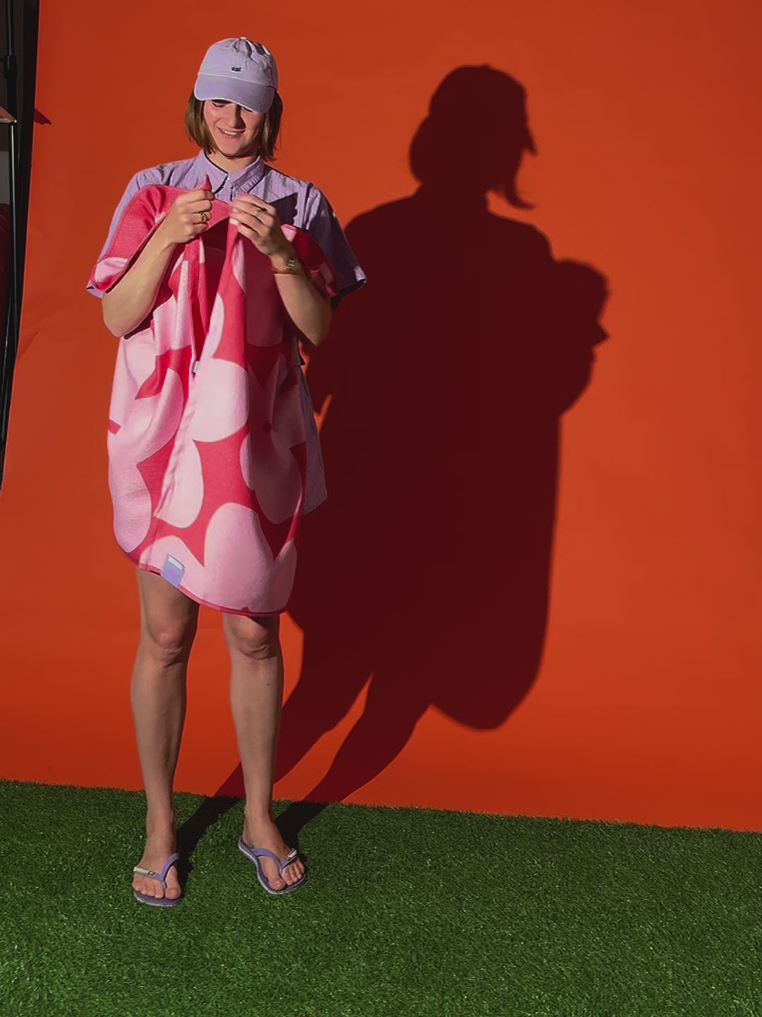 The Wave towel combines a bold pattern with a soft touch. The combination of blue and cool pink is eye-catching, while the cozy jacquard fabric of cotton and bamboo wraps you in comfort after a bath, swim, or shower. The pattern is reminiscent of waves—light, repetitive, and relaxing. Roll it up, pack it in your bag, and head out to enjoy the sun—to the beach, your garden, the pool, or anywhere else.