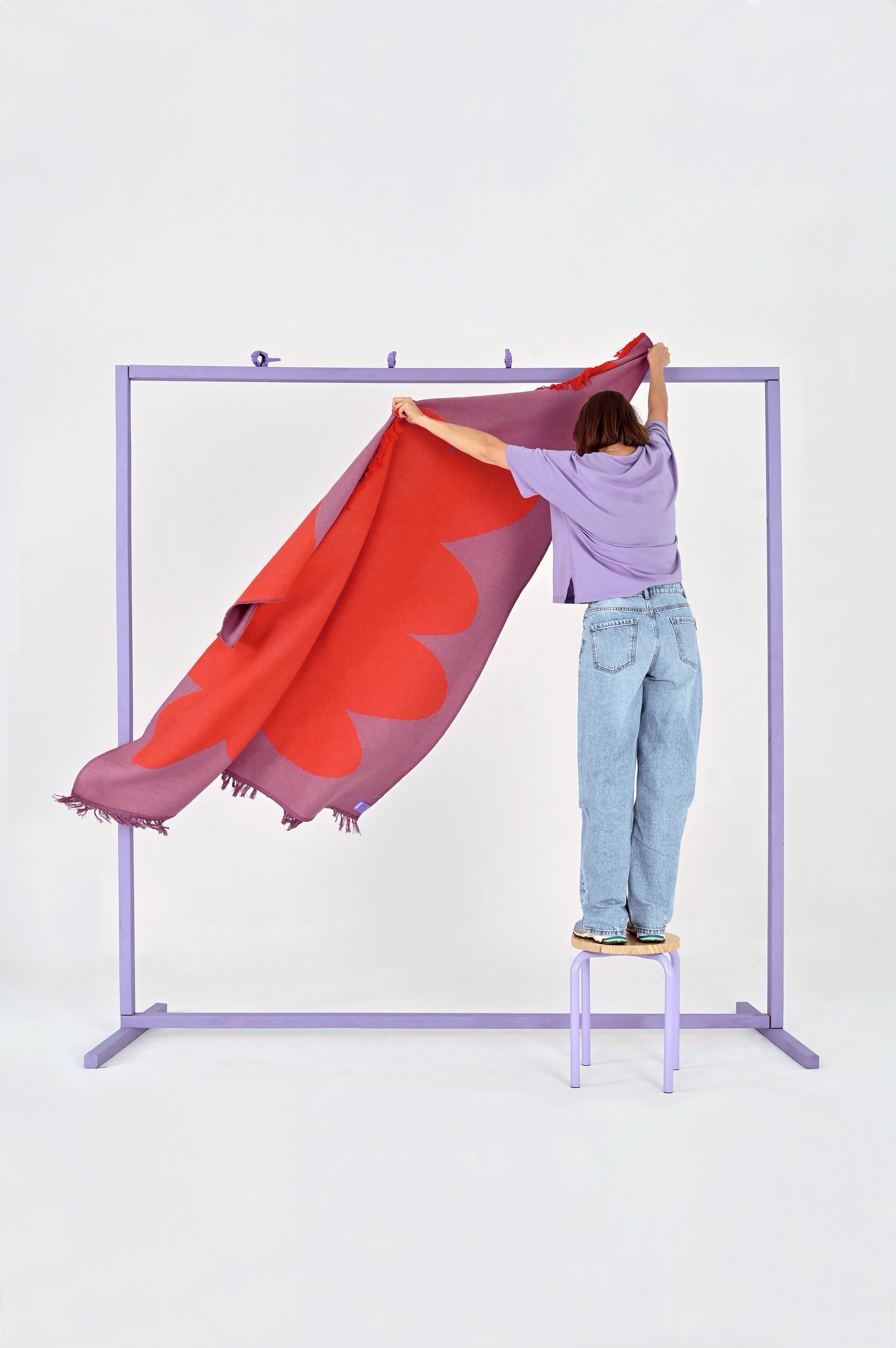 We’ve wanted to create this color combination for a long time, and we finally did it! Juicy red and delicate purple in a large-scale geometric pattern. This combination is even more delightful because the BISCUIT model is made from 100% cotton yarn.