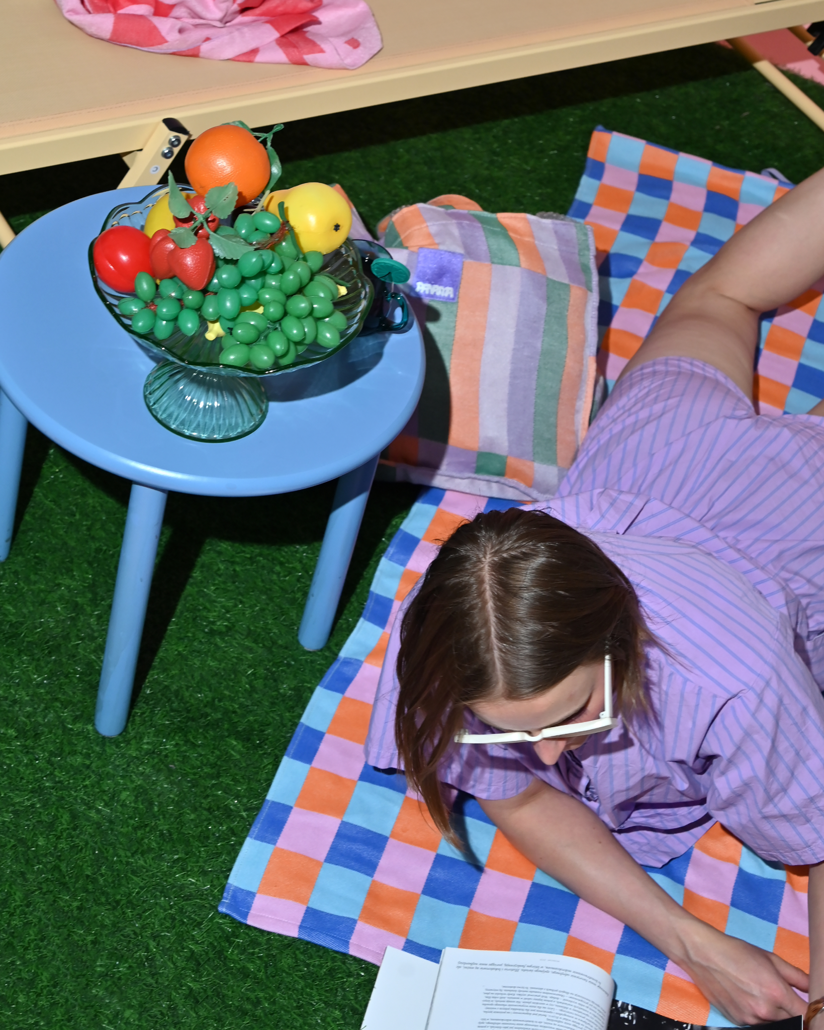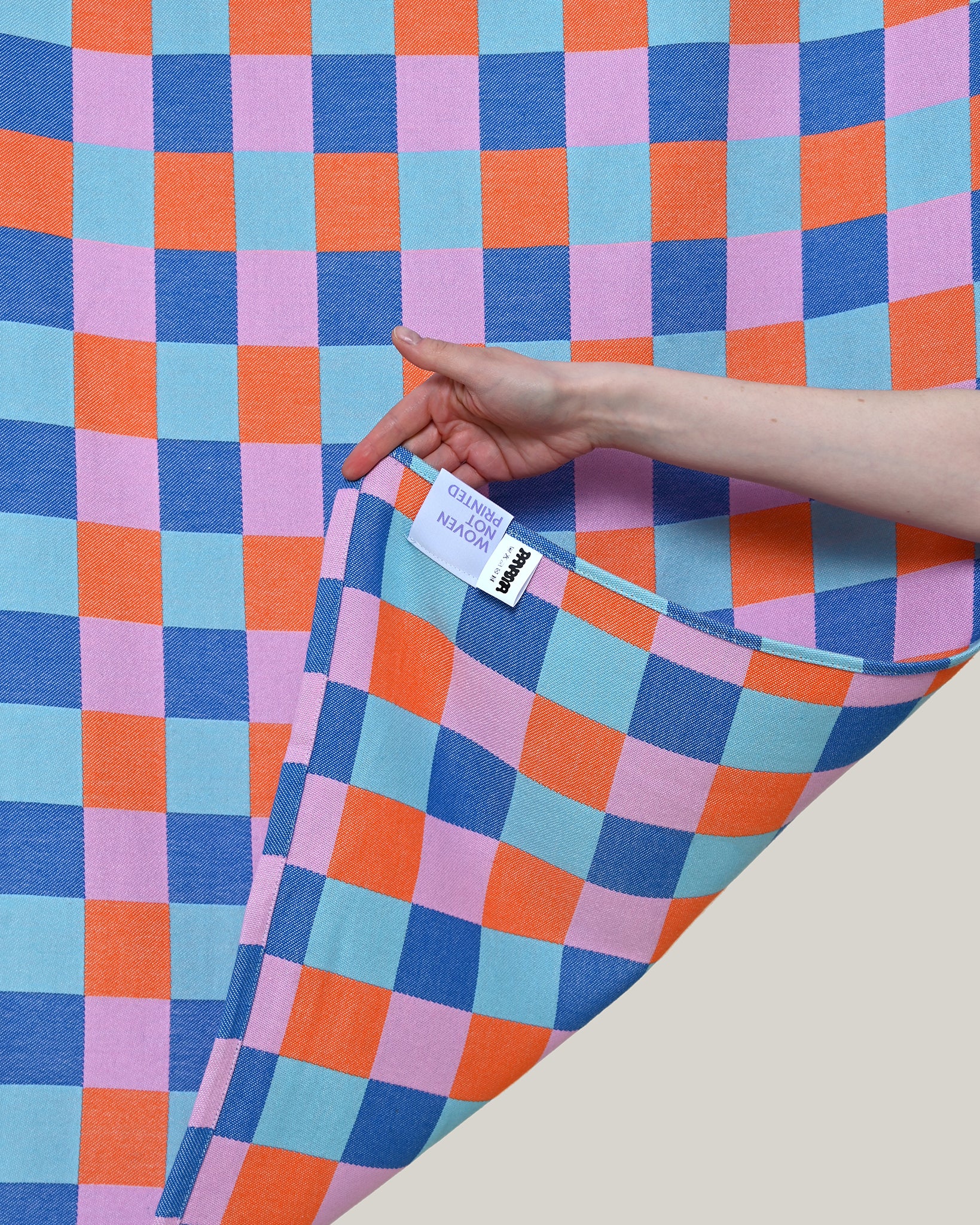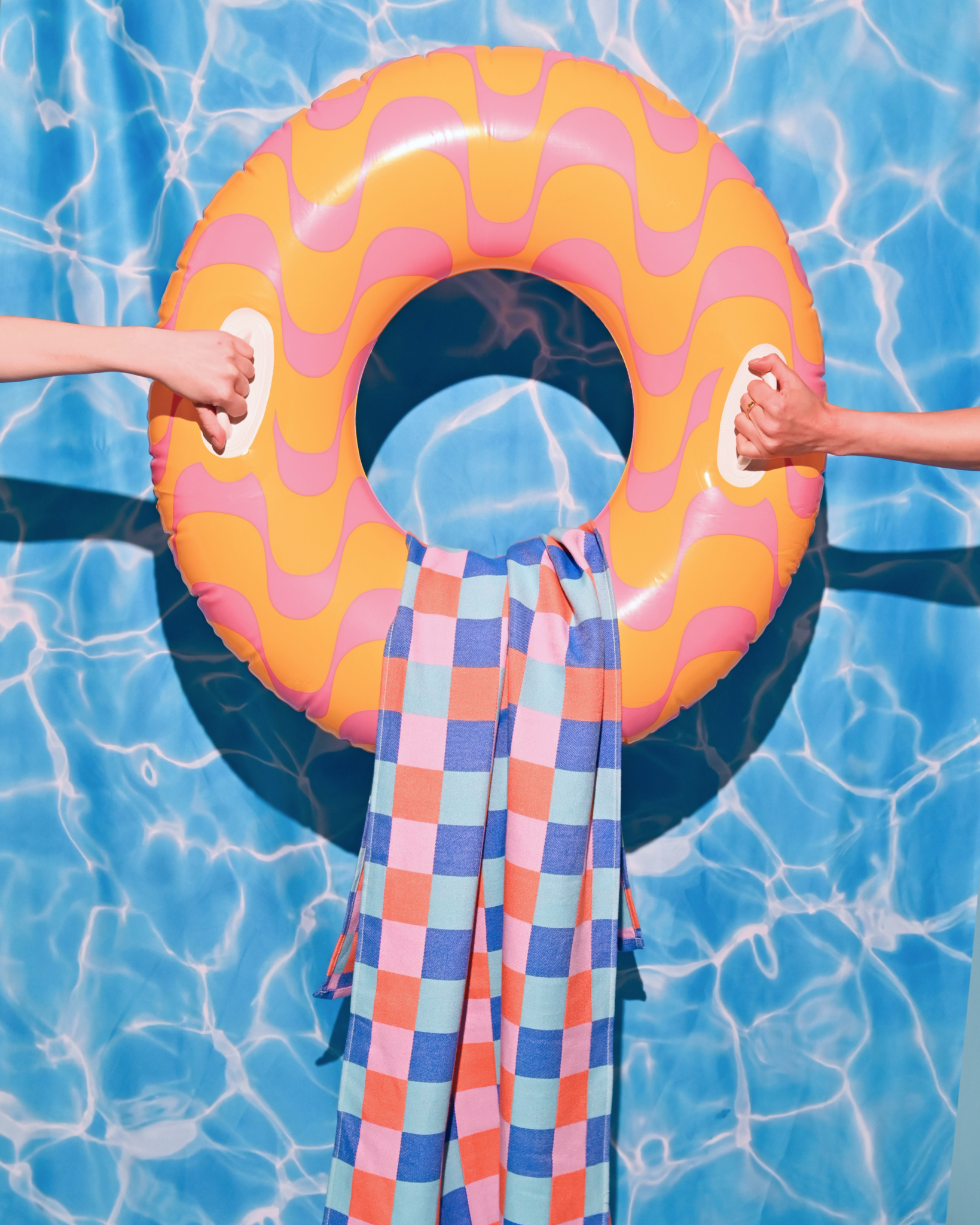 The shimmering floor of a hotel pool or the wall of a Mediterranean villa? You decide. These tiles have the same vibe – pure pleasure encapsulated in a simple pattern and vibrant color. Light, absorbent, and ready to take with you wherever you plan to soak up some sun. Roll it up, fasten it with a rubber band and the towel is ready to throw into your bag, backpack or suitcase.