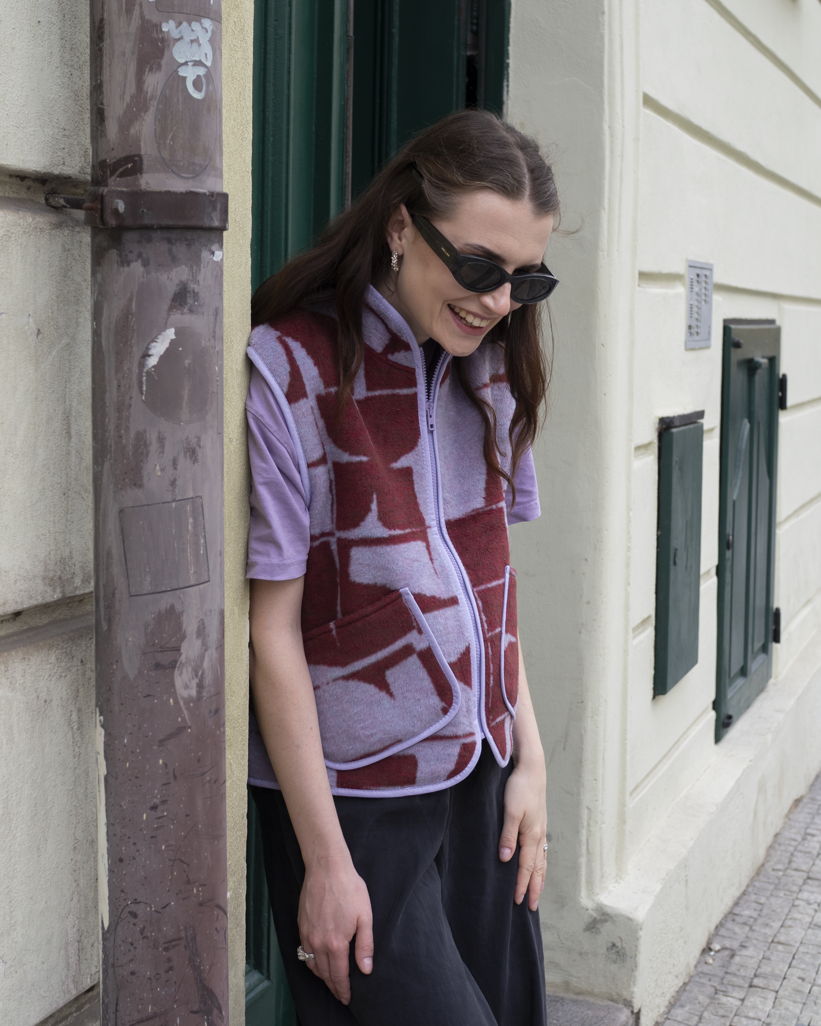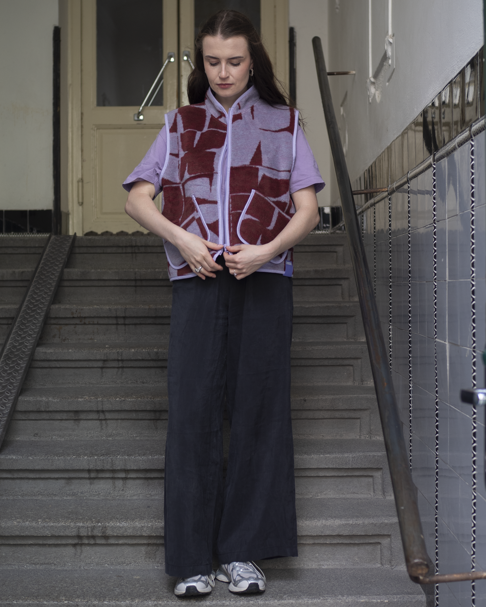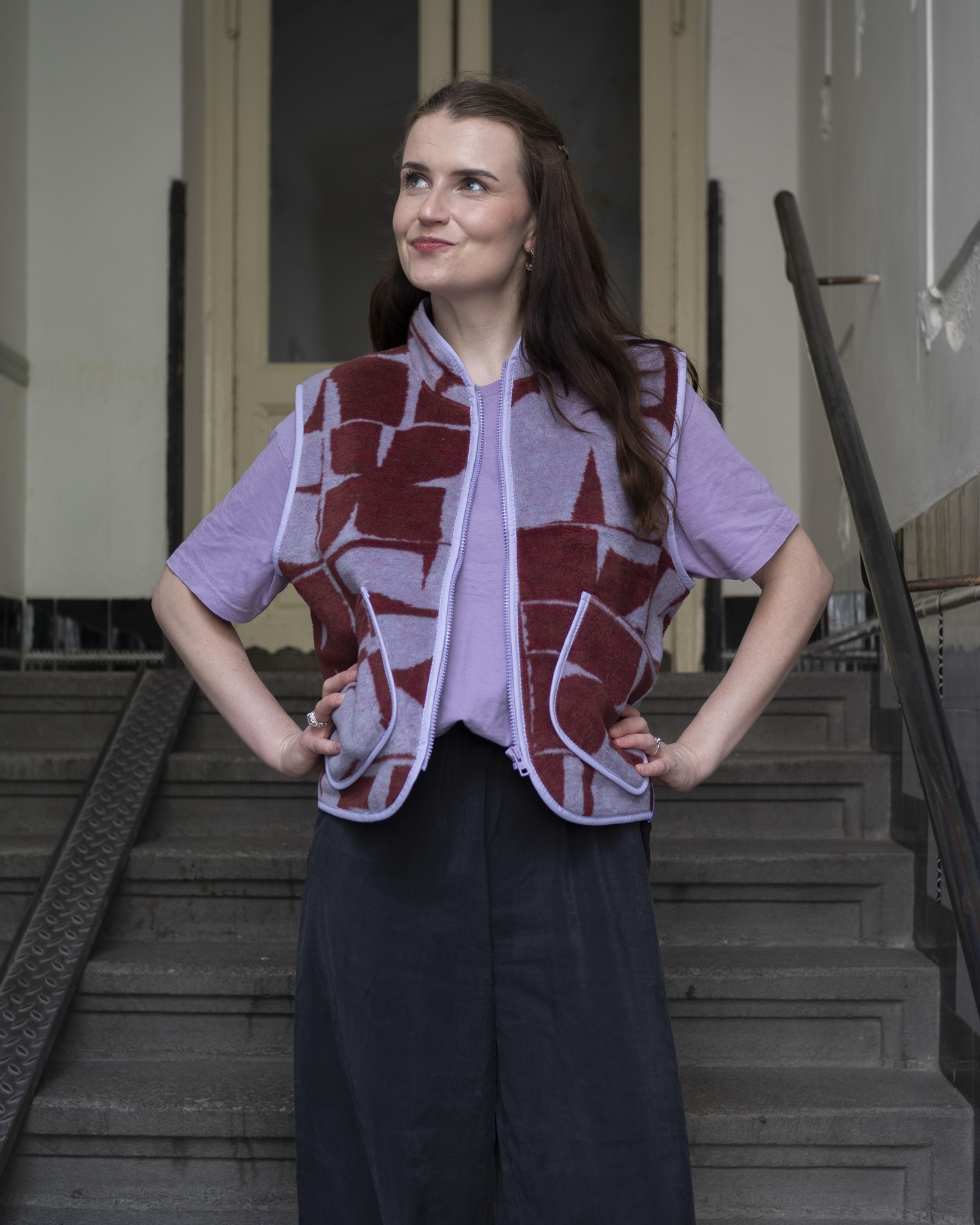 Orange, dusty pink, and flowers – that's the recipe for a warm and flattering vest. This pattern was the first and obvious choice for the vests. How else could it be?