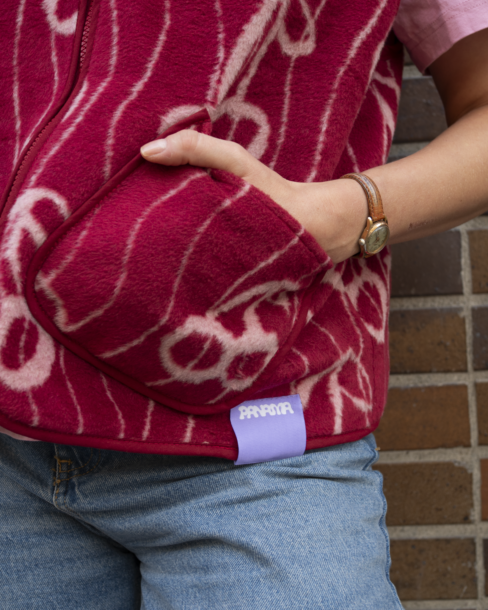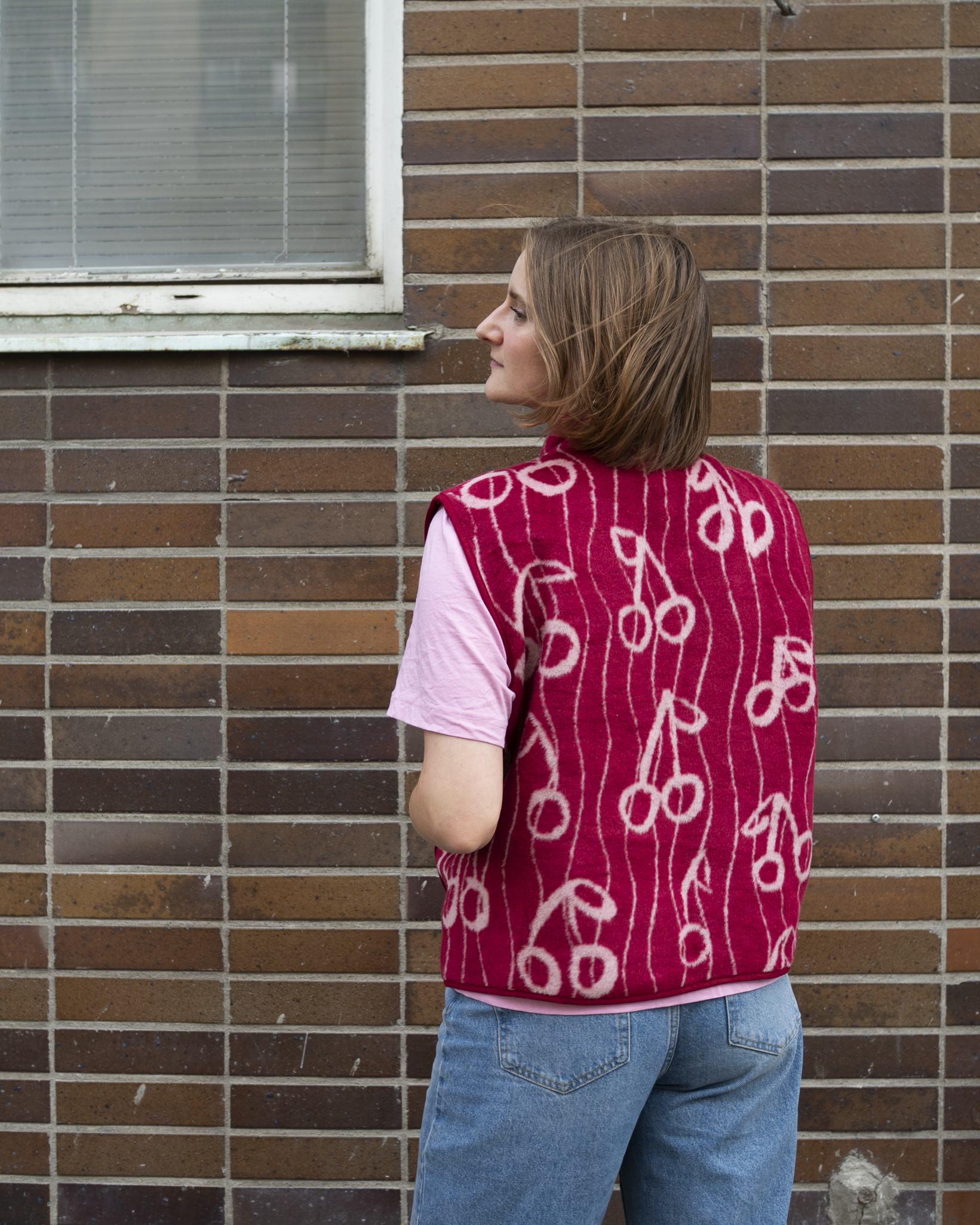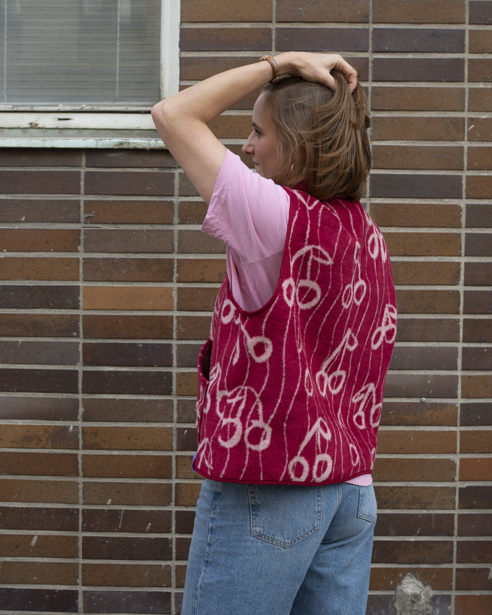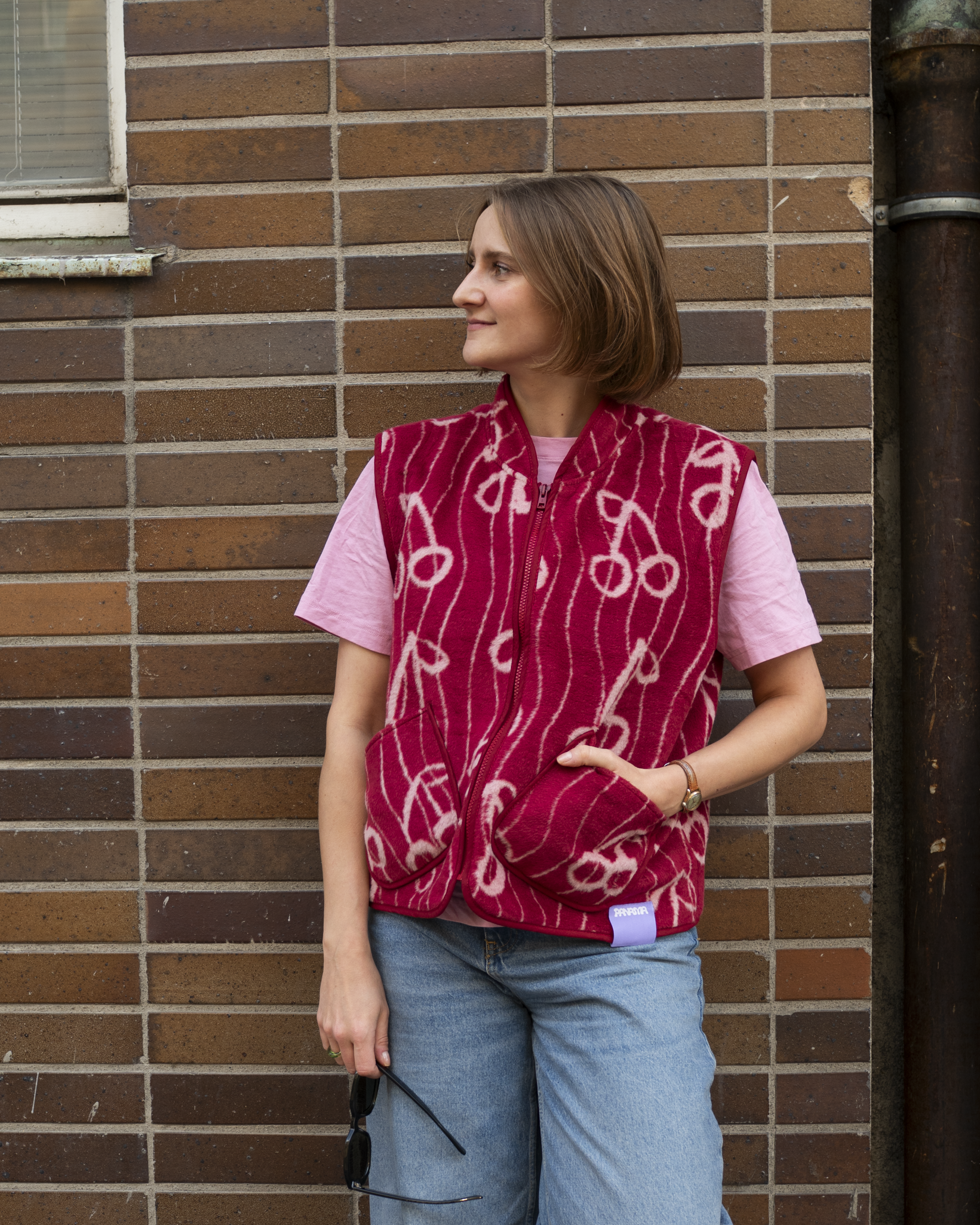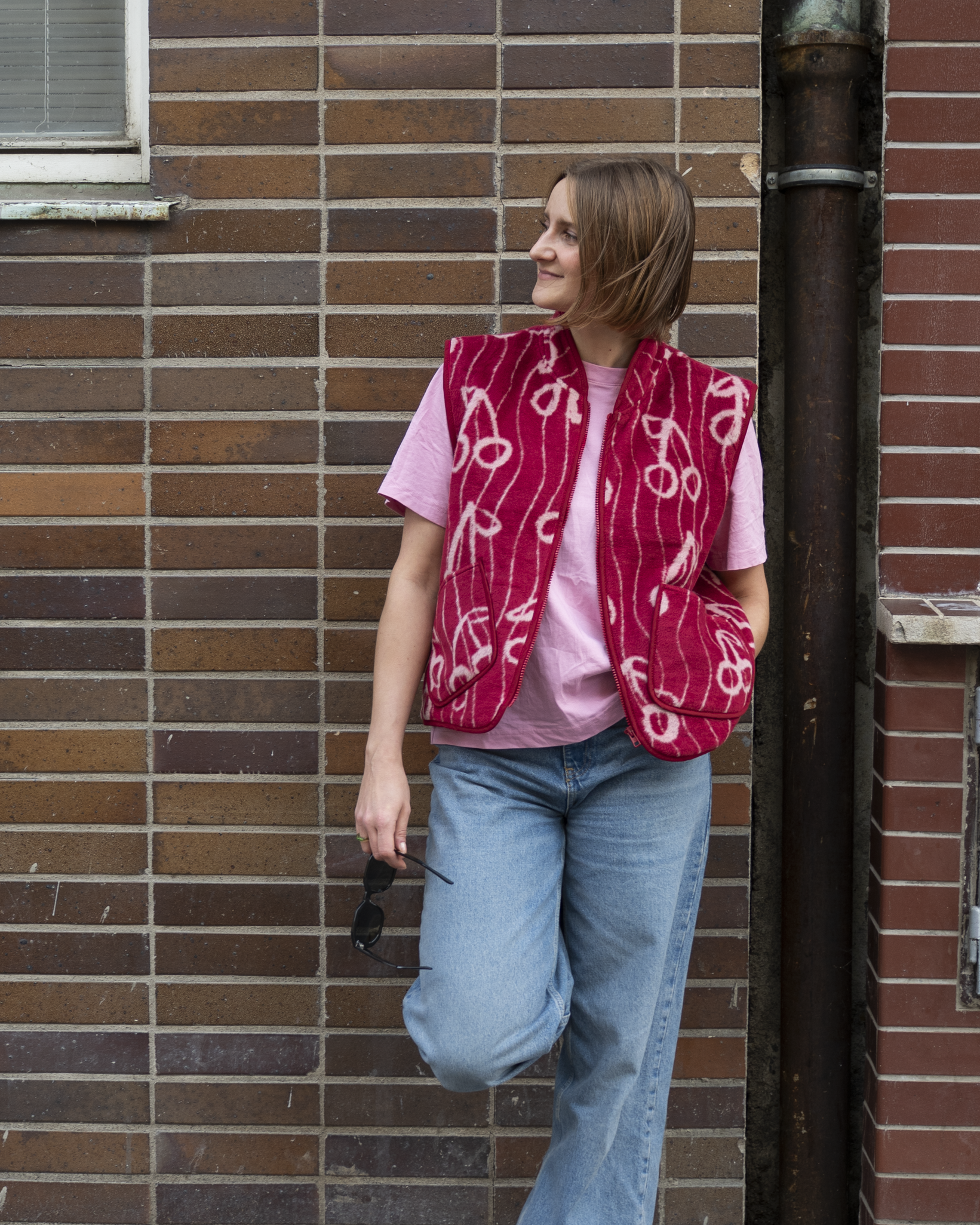 Orange, dusty pink, and flowers – that's the recipe for a warm and flattering vest. This pattern was the first and obvious choice for the vests. How else could it be?