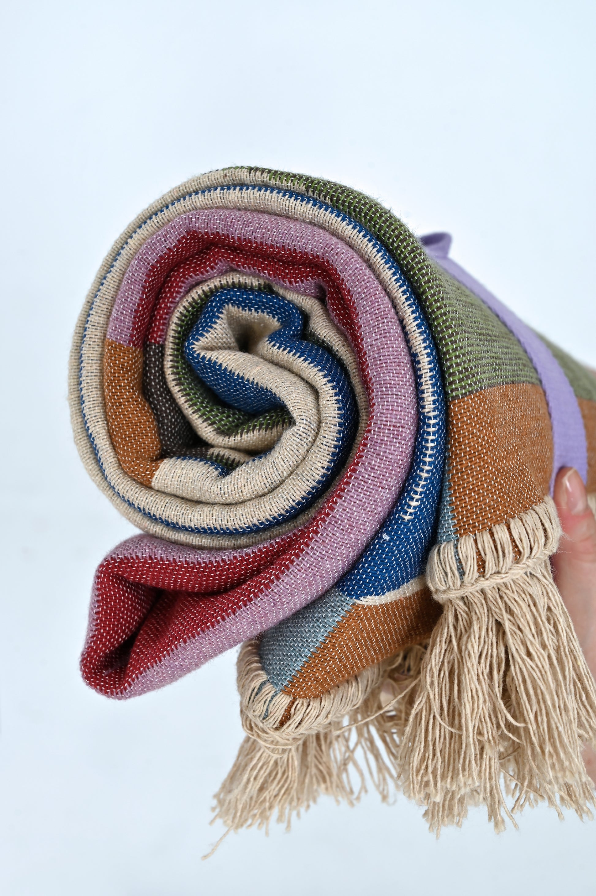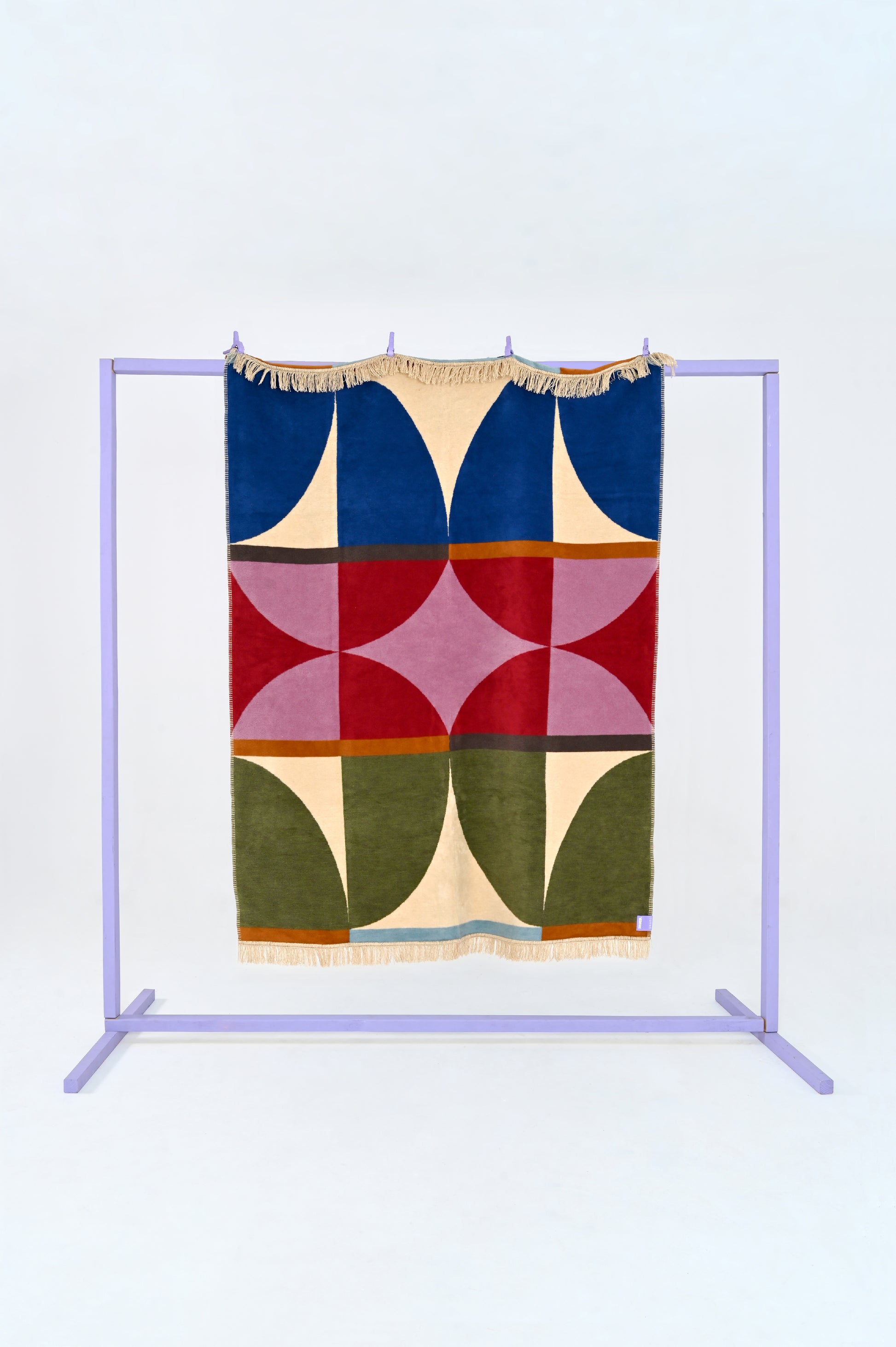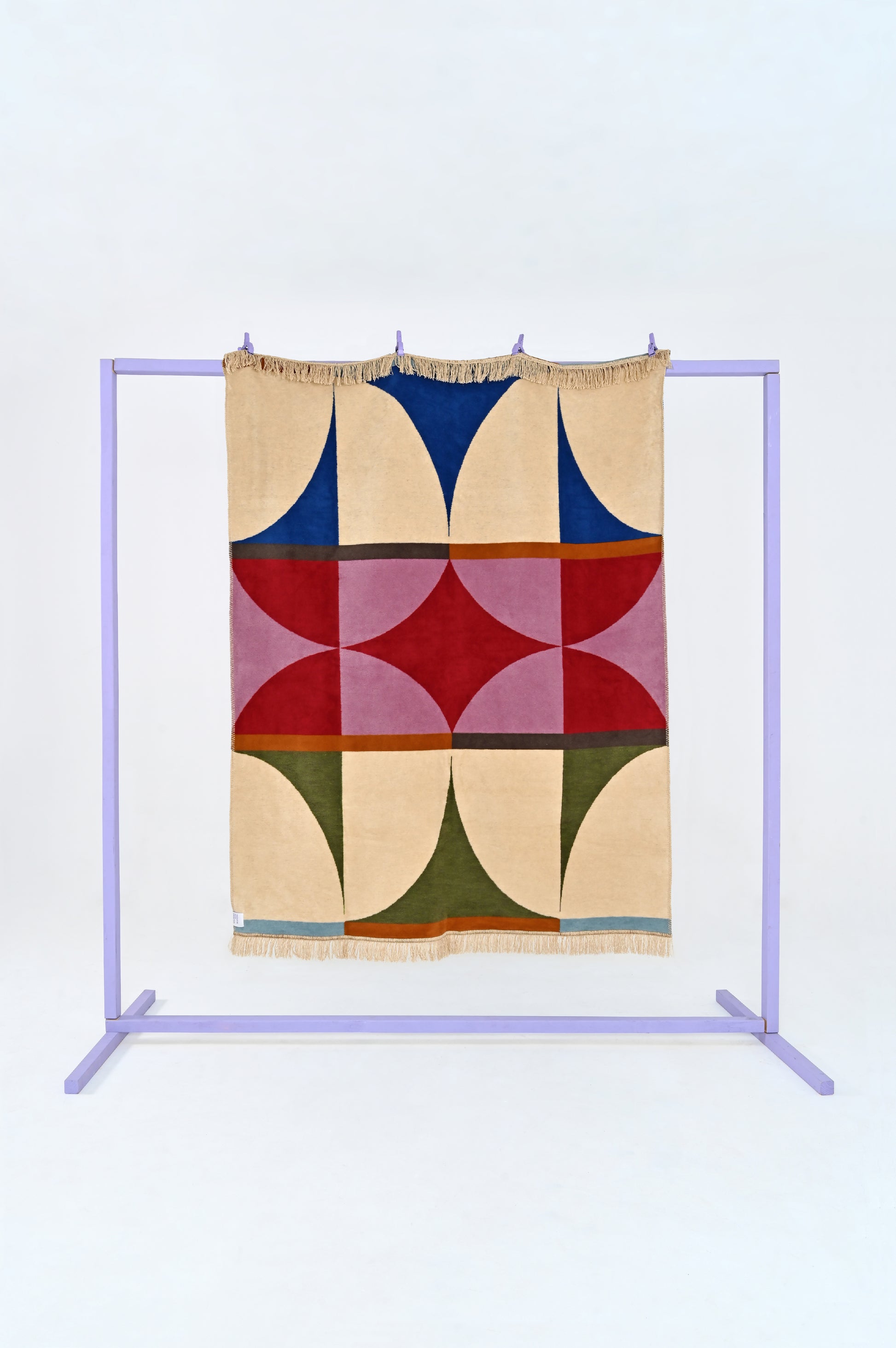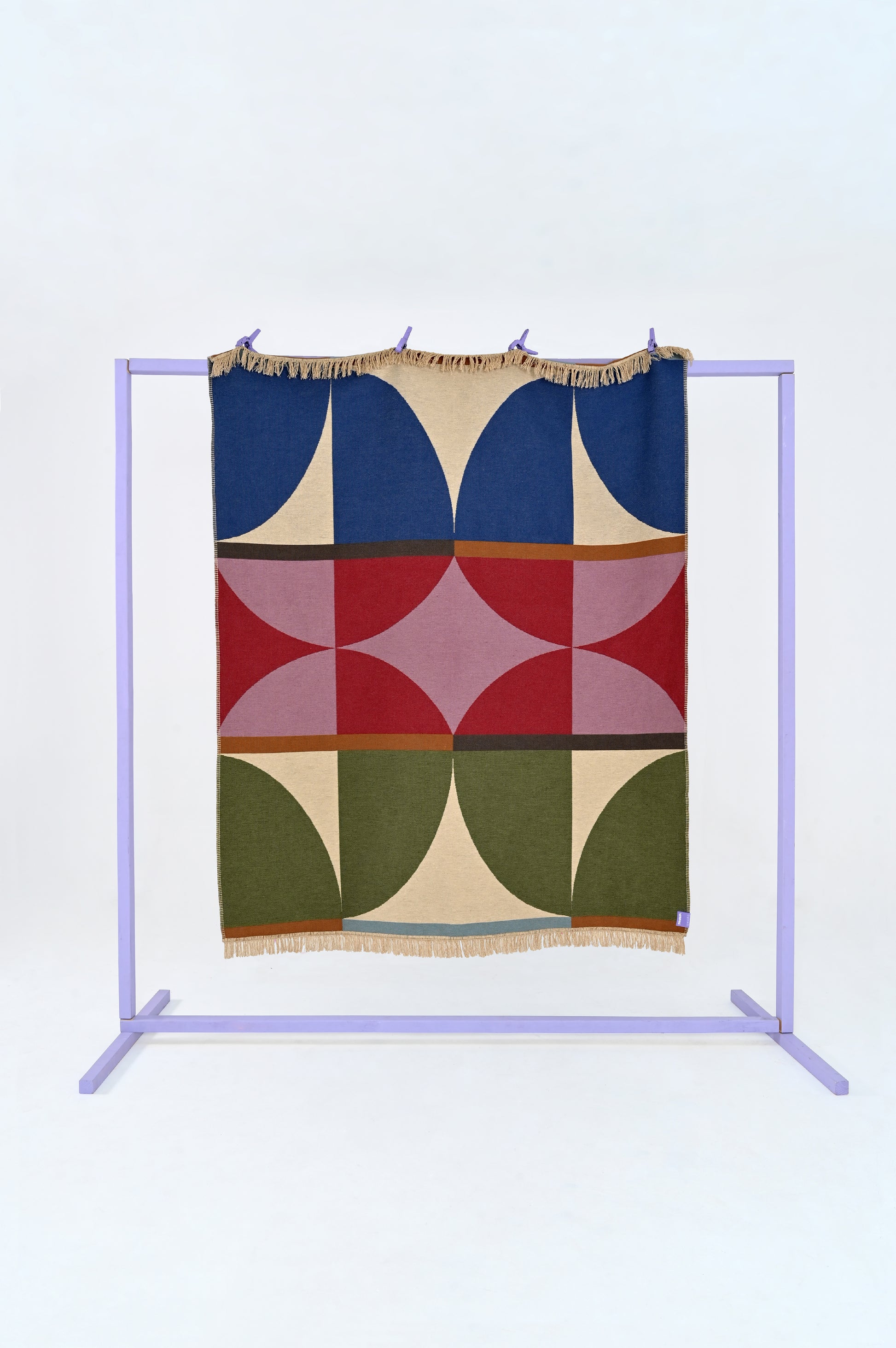 Rytm półokręgów i pól koloru — granat, oliwka, krem, bordo i fiolet spotykają się tu w spokojnej, geometrycznej kompozycji. Nowoczesny kolaż - odważny, ale harmonijny. Przyjemny dla oka i dla ciała, ARC subtelnie wprowadza zdecydowany kolor do wnętrza.