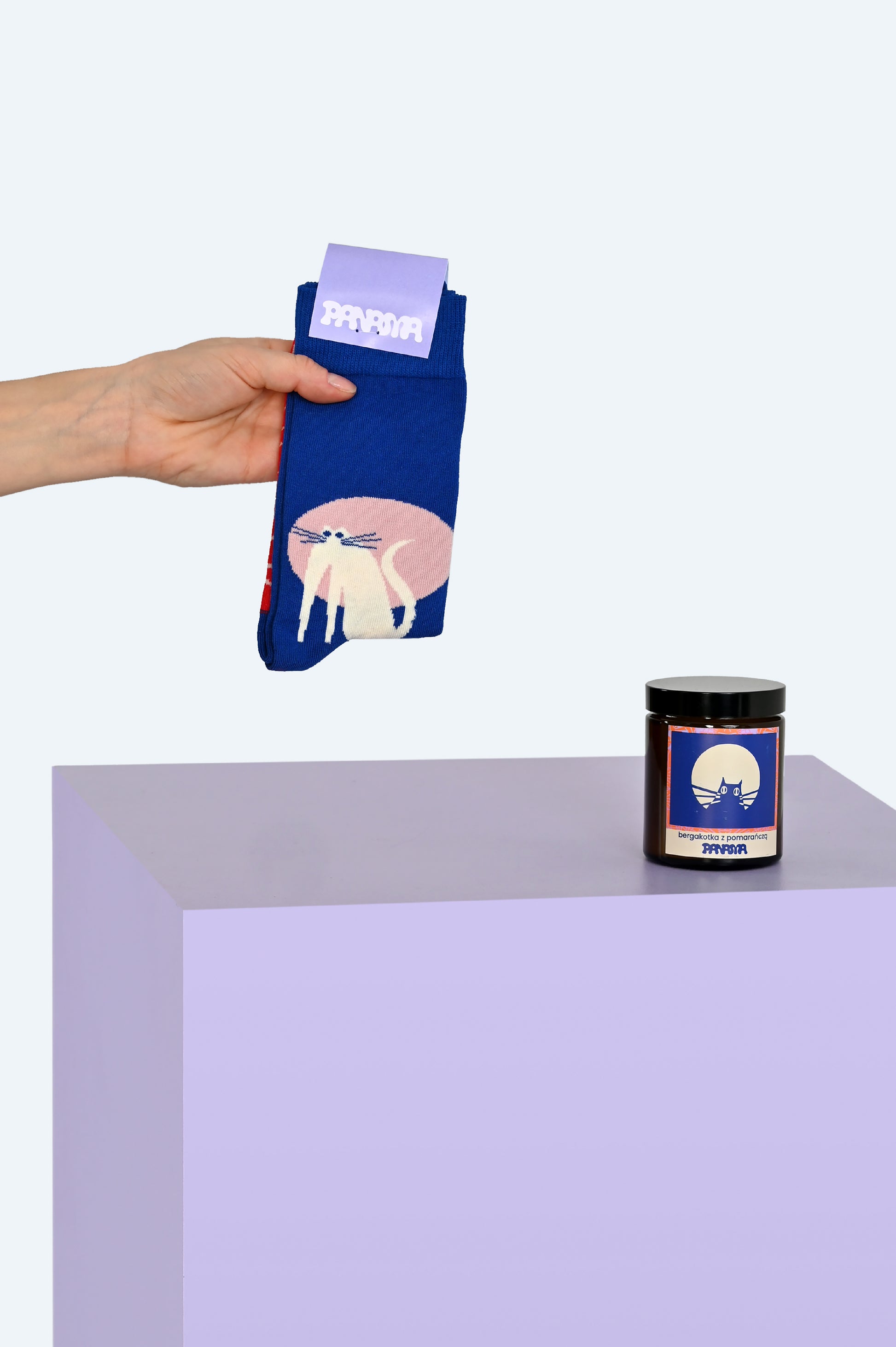 Subtelne lądowanie w panamowym świecie dla wszystkich kocich fanów i tych z szacunkiem podchodzącym do domatorstwa - oto mini set: skarpety, w dwóch przedziałach rozmiar owych do wyboru, oraz świeczka o zapachu słodkim jak kotki.