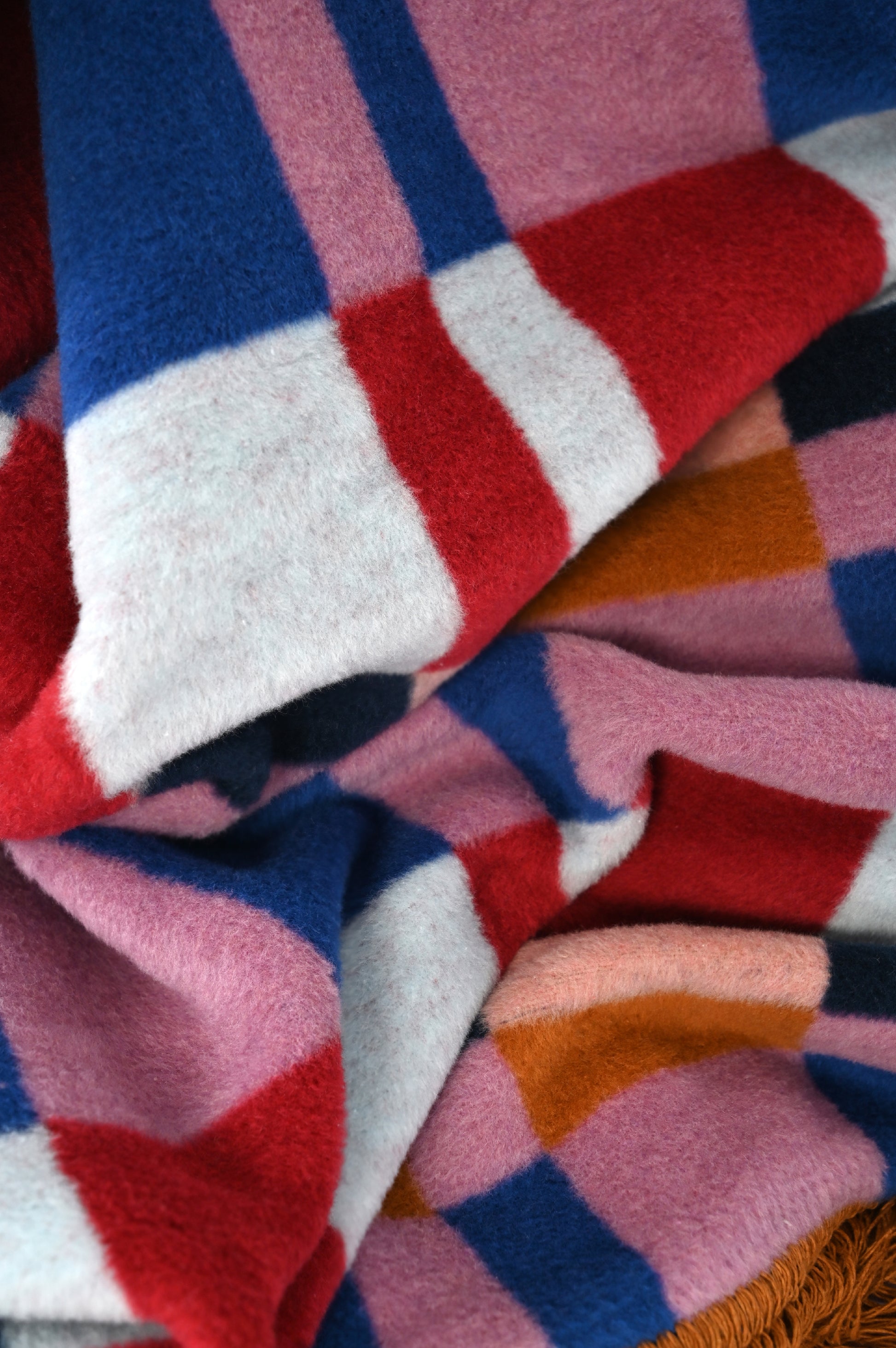 Retro i pełen życia - MADRAS to miks kolorów, w uporządkowanej kracie. Panamowy MADRAS to nasycony granat, delikatny błękit, bordo, róż i dwa odcienie brązu. To koc dla tych, którzy lubią, gdy w domu dzieje się coś ciekawego – nawet, gdy po prostu leży na kanapie.