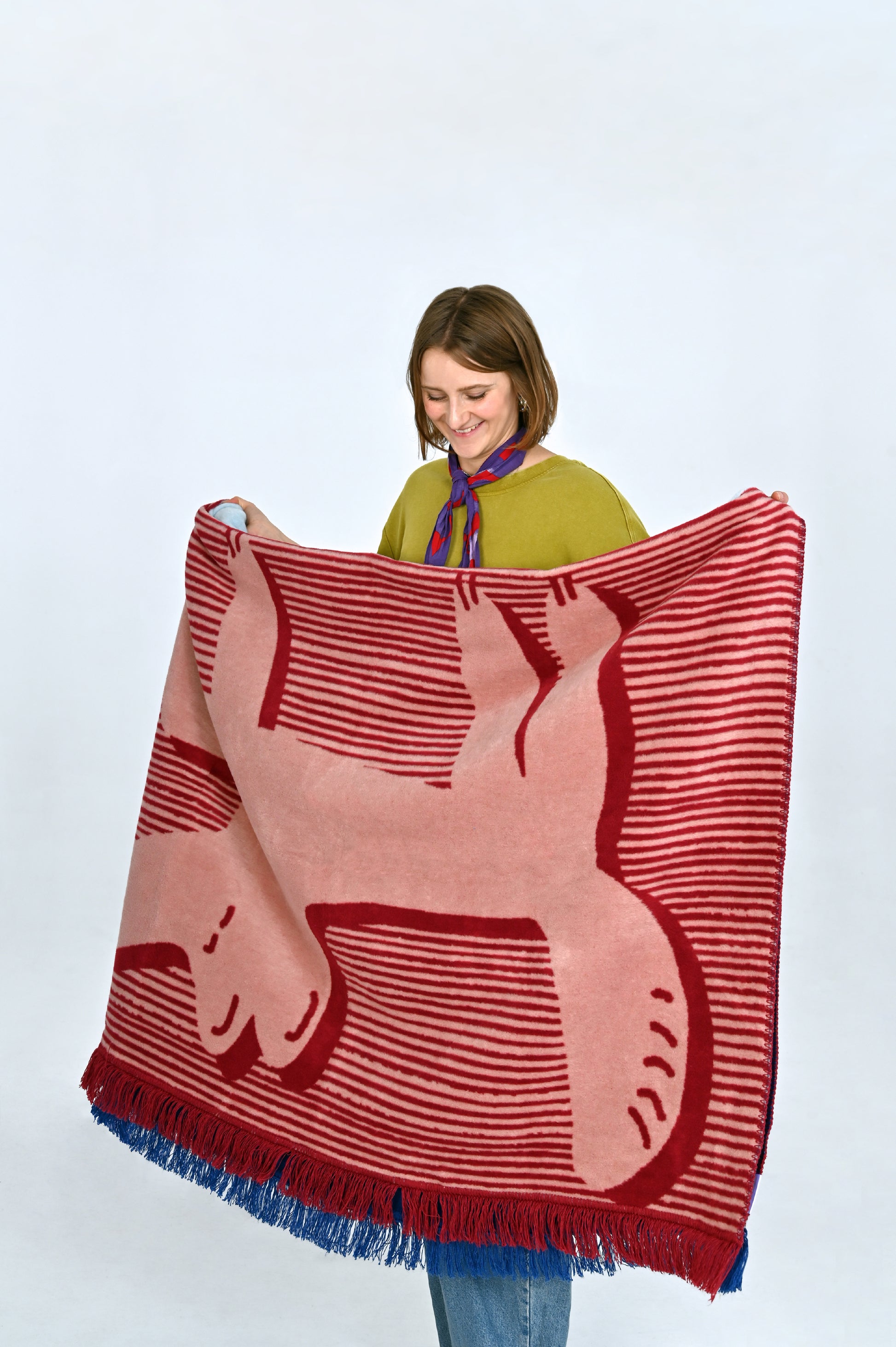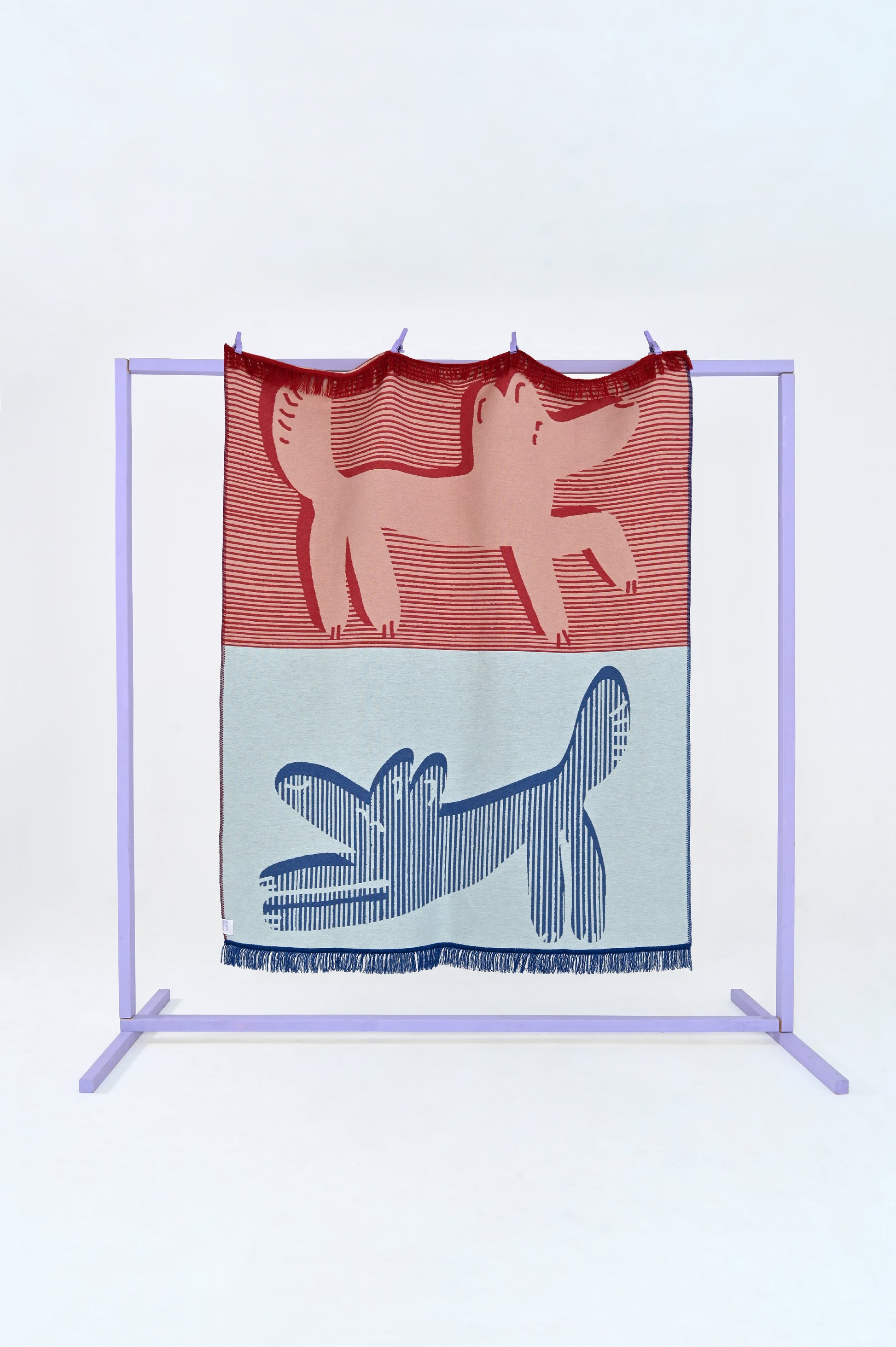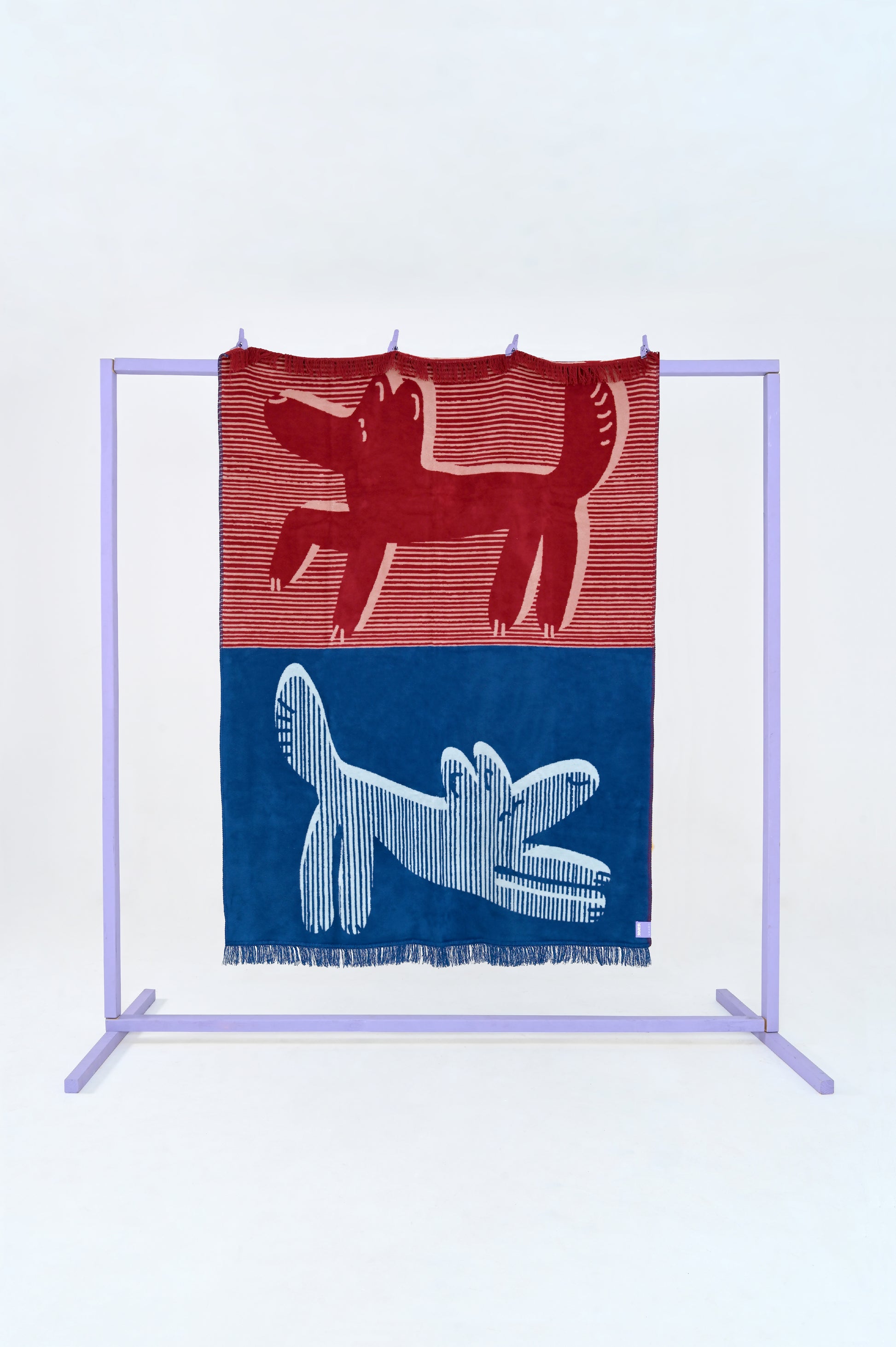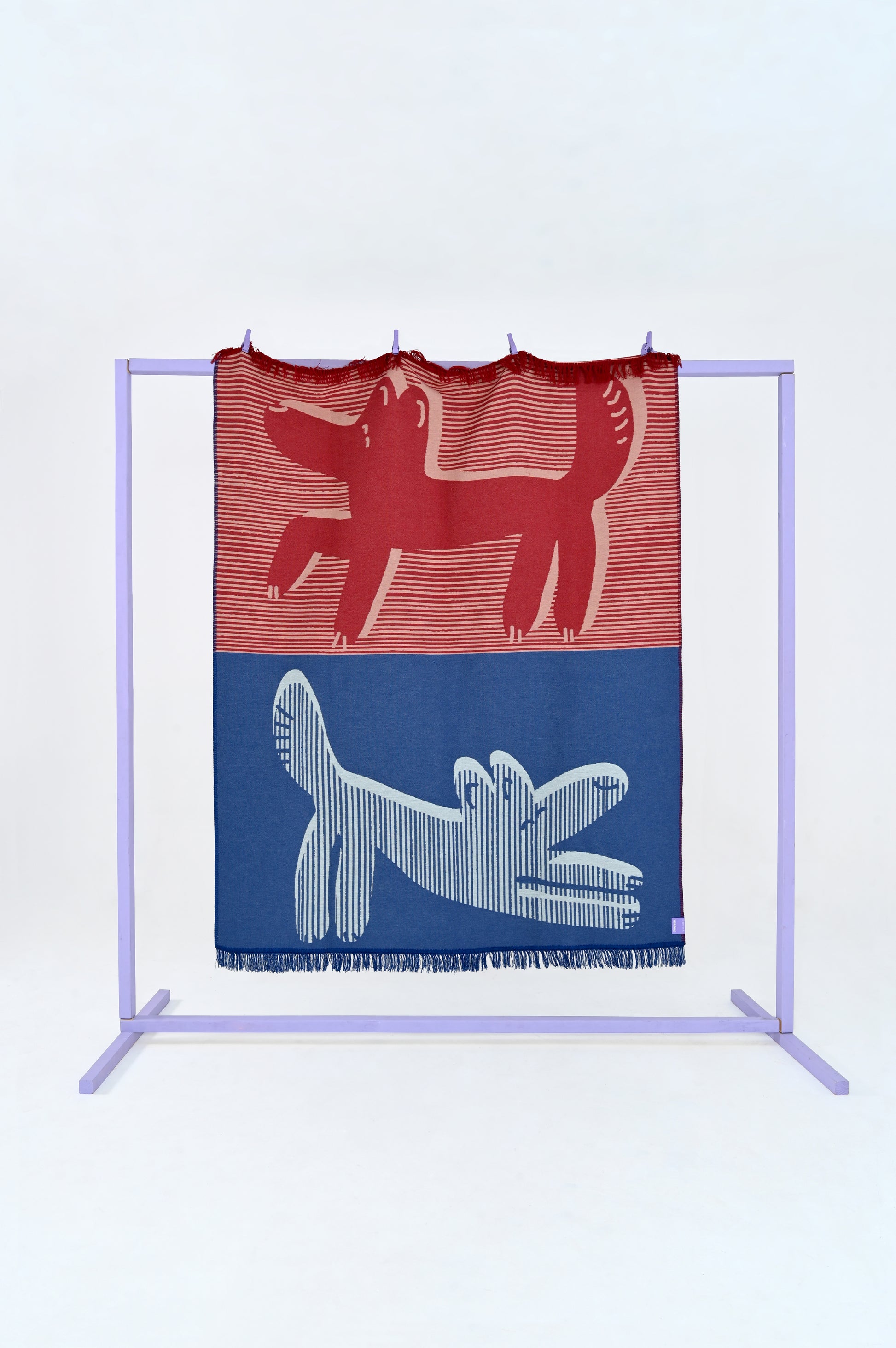 Psie powitanie w dwóch odsłonach – kulturalne bordo i leniwy granat. Ten koc, to wszystko czego potrzebujesz na kanapie po powrocie do domu. Prosty, graficzny i trochę figlarny. DWA PSY to wzór dla tych, którzy lubią, gdy w domu jest ruch ale i miejsce na niezbędną drzemkę po spacerze.