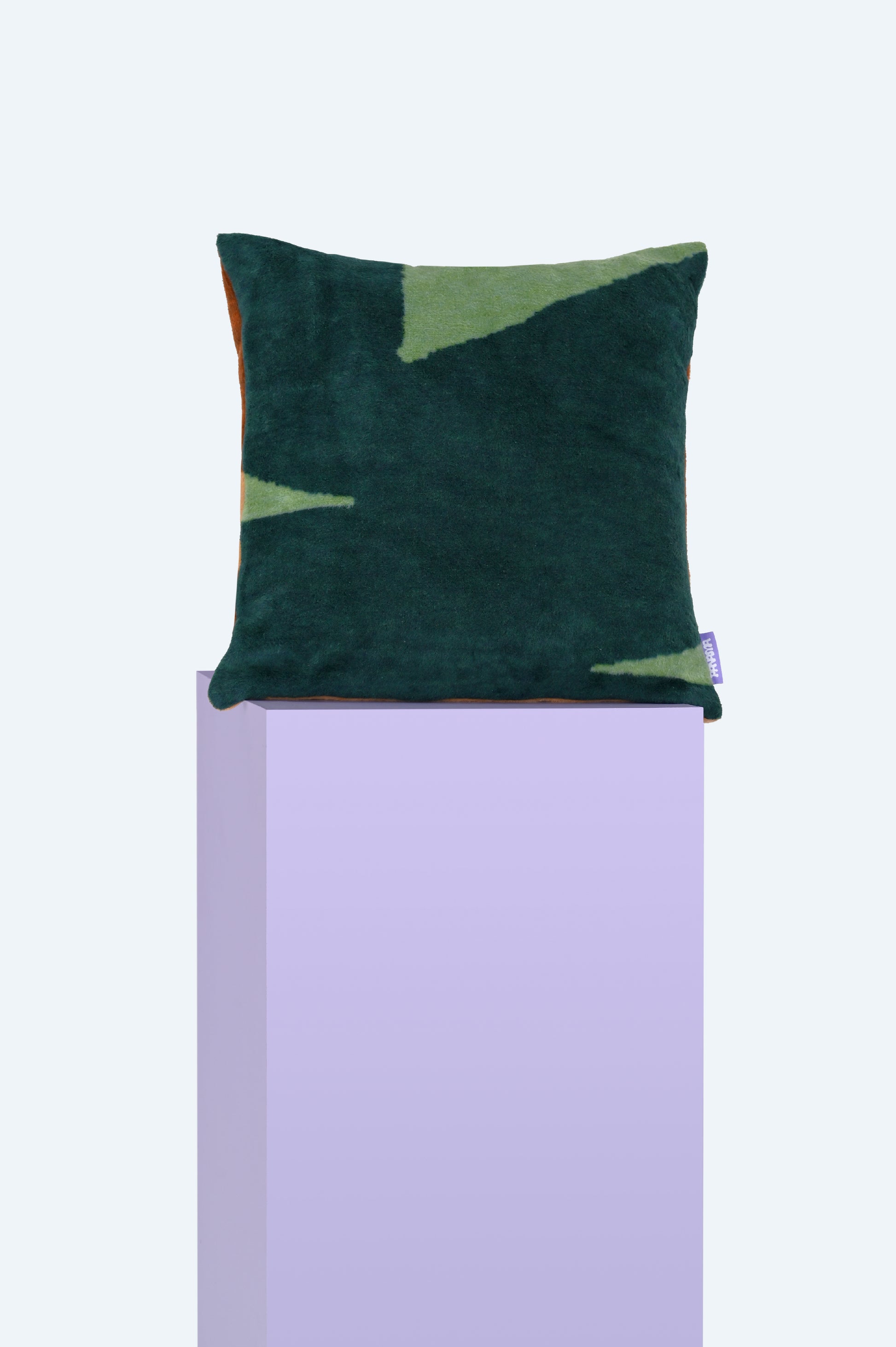 Chłodna zieleń, ziemiste kolory w miękkiej, malarskiej kompozycji. Zieleń, brąz i beż budują w spokojny rytm, który przypomina fragment krajobrazu przeniesiony na tkaninę. Dwustronna poduszka TERRA wprowadza do wnętrza ciszę – i przyjemny, domowy spokój.